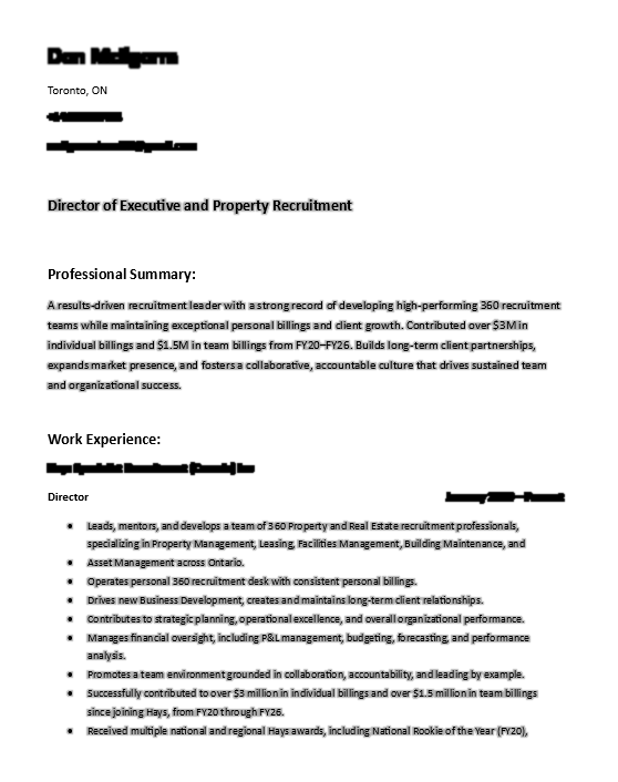 E‑transfer $99 + Tax to DRS Resume Service at don@drsresumeservice.com